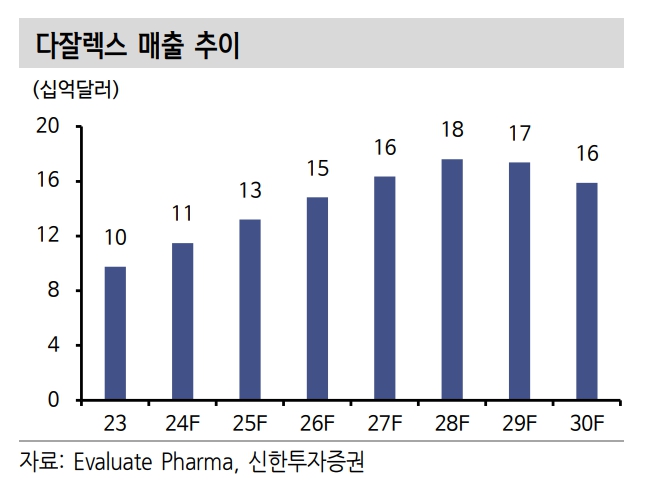 - 신한금융투자에 따르면, 2028년 기준으로 키트루다SC 시밀러가 40조 원 매출 중 50%를 차지하며 20조 원의 SC 시장에서 30% 점유율을 가정하면 7-8조 원의 매출을 올릴 수 있다고 전망합니다.
