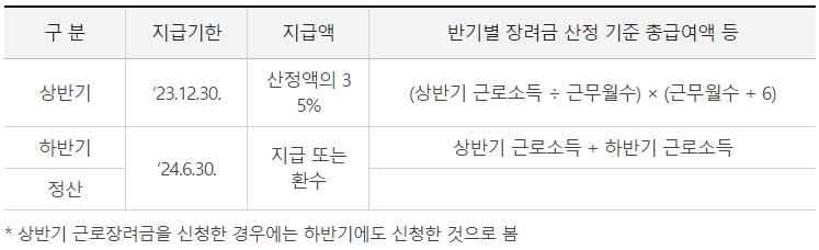 근로장려금 심사 및 지급기한