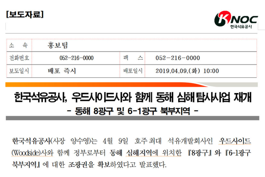 최근 동해 심해 석유·가스 매장량 분석을 발표하면서