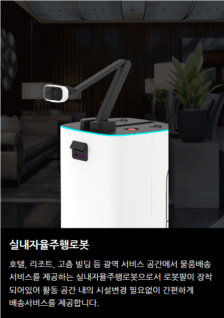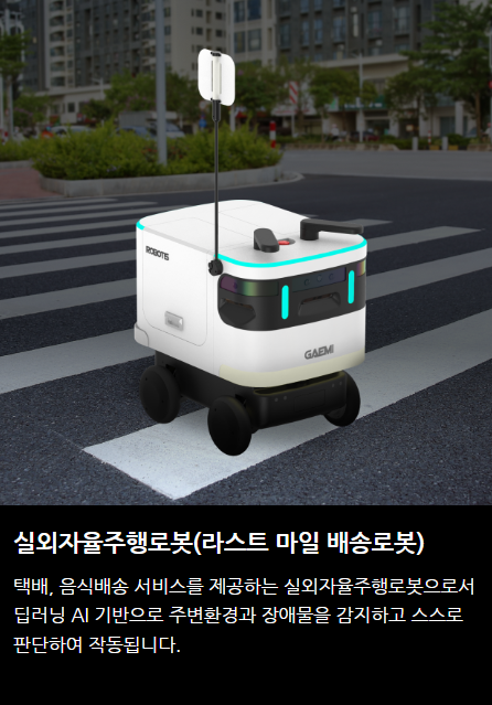 개미(GAEMI)는 호텔, 리조트, 병원, 오피스 등에서 다양한 배송 서비스를 제공하고 있다. 국내 최초로 로봇 팔이 장착되어 별도의 통신 장치 없이 자체 인공지능(AI)으로 층간이동이 가능하다. 엘리베이터 버튼 조작, 보안 태깅, 노크, 벨링 등을 수행할 수 있어 비대면 서비스 제공에 유리하다.