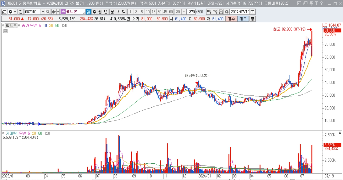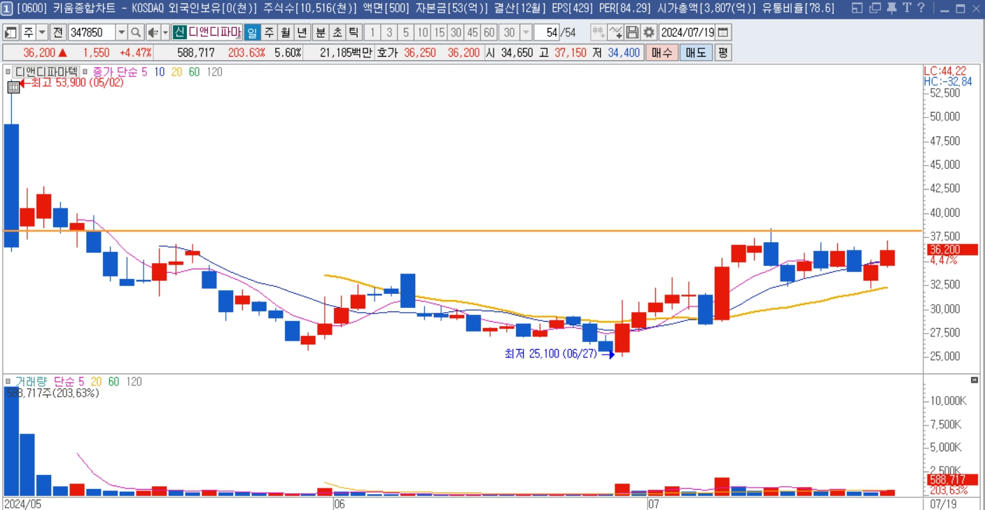 공모가 기준 3만3000원에 상장, 5월 14일 공모가 아래로 떨어졌다. 이달 주가가 오르며 공모가를 넘어섰다.