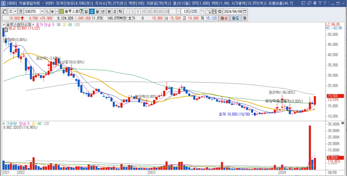 무증 이후 물량도 풀려있고, 주가를 누른 이후 호재가 연이어 터졌습니다.