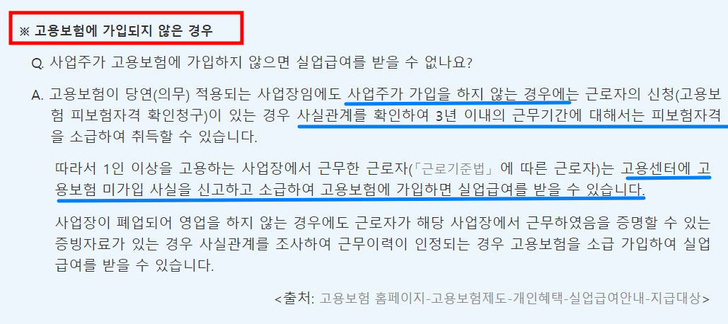 - 실직일 이전 18개월 동안 고용보험 가입기간이 180일 이상이어야 합니다. 고용보험이 적용되는 사업장에서 근무하셔야 실업급여를 신청할 수 있고, 고용보험이 적용되지 않는 곳에서 근무한 기간은 포함되지 않는다는 점 주의하세요.