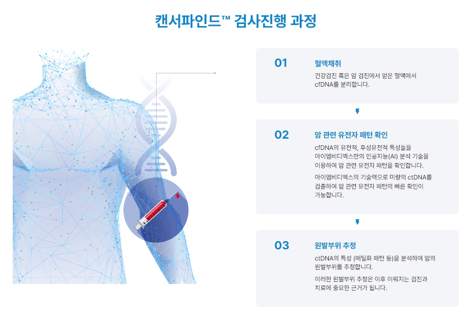 아이엠비디엑스는 암 액체생검 전문 기업으로, 혈액 검사만으로 암을 진단하는 기술을 개발했다.