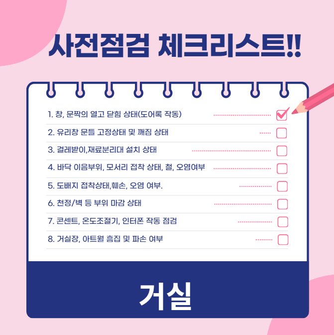 "새 집, 새 시작의 설렘을 가득 안고 첫발을 내딛기 전, 사전점검으로 그 기쁨을 두 배로 만들어보세요. 꼼꼼한 체크리스트로 당신의 꿈의 집을 완벽하게 준비하고, 안전하고 편안한 새로운 생활을 시작하세요."