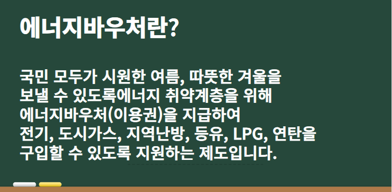 에너지바우처는 경제적으로 어려운 취약계층이 에너지 비용을 부담 없이 사용할 수 있도록 지원하는 제도입니다.