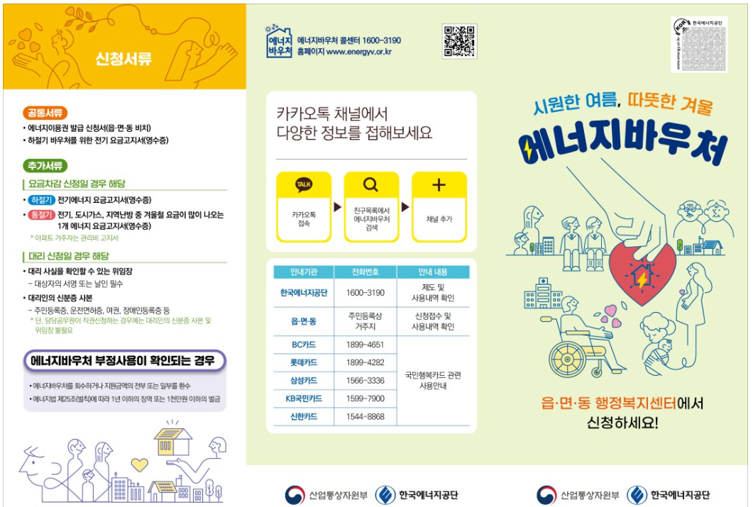 에너지바우처는 국민기초생활보장법 상 기초생활수급가구를 대상으로 에너지 비용을 지원해주는 바우처예요. 이를 통해 취약계층이 여름철에는 시원하게, 겨울철에는 따뜻하게 생활할 수 있도록 돕는 제도랍니다.