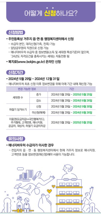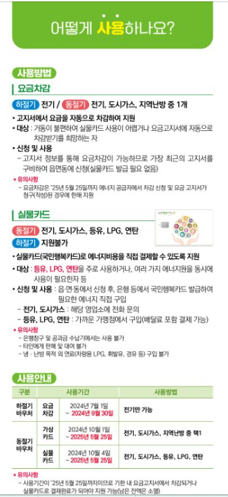 | 동절기 | 도시가스 , 전기 , 지역난방 중 한가지를 선택하여 신청 |