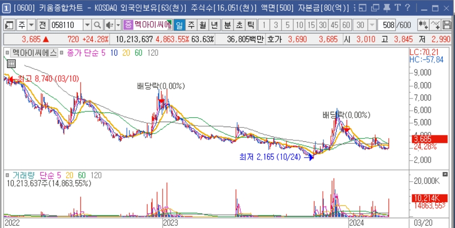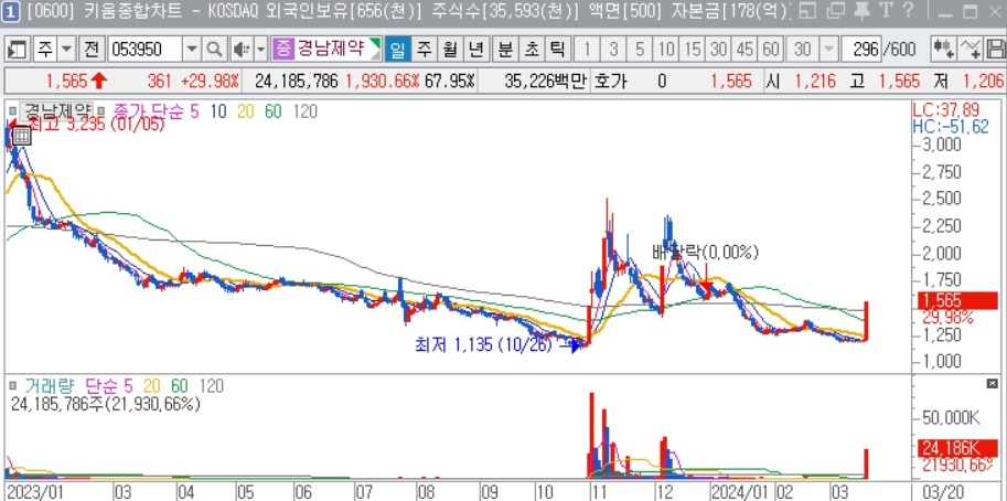 다양한 의약품을 제조, 판매하는 회사로, 감염병 치료제 개발에 필요한 기반 기술과 생산 시설을 보유하고 있습니다. 폐렴 치료에 사용되는 아지트로마이신을 생산하고 있으며, 이 약물은 마이코플라즈마 폐렴이라는 호흡기 질환에 대한 치료제에 사용되어 폐렴 관련 대장주로 주목받고 있습니다.