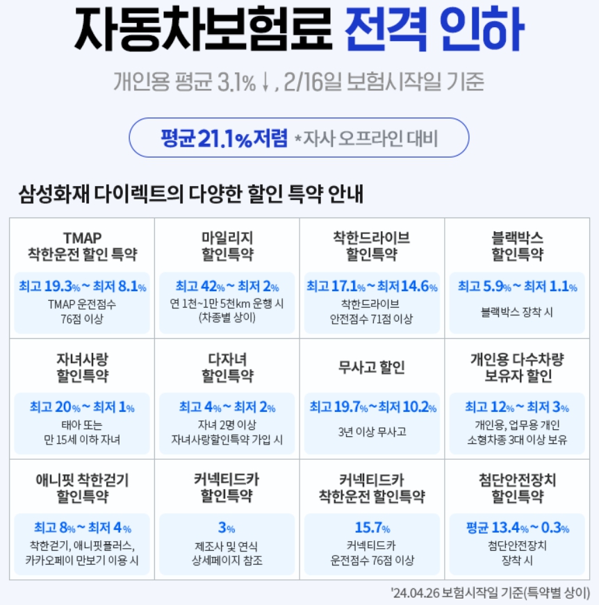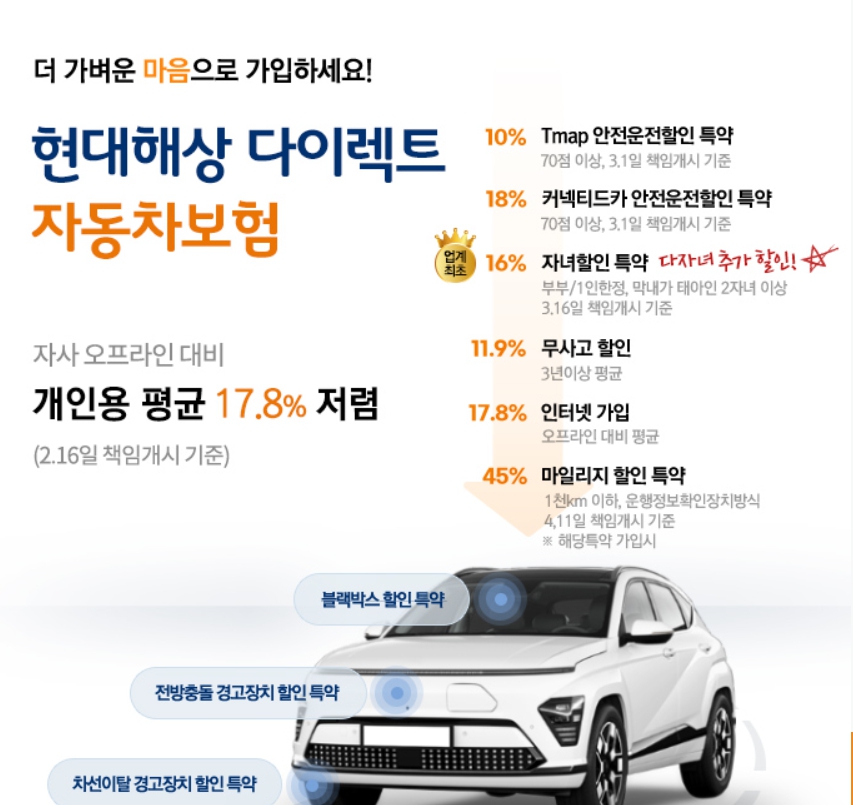 • 보험료 할인 혜택 확인: 무사고 운전, 블랙박스 장착, 자녀 할인 등 다양한 할인 혜택을 제공하니 꼭 확인해 보세요.