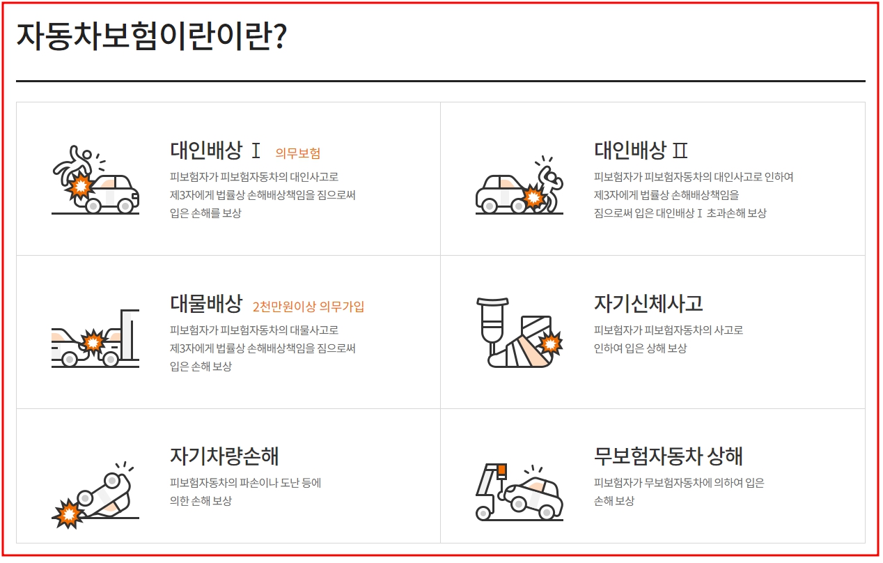 - 책임보험 가입 의무: 자동차 운전자는 대인배상Ⅰ과 대물배상 2천만 원 이상의 책임보험에 가입해야 합니다. 미가입 시 벌금이 부과될 수 있습니다.