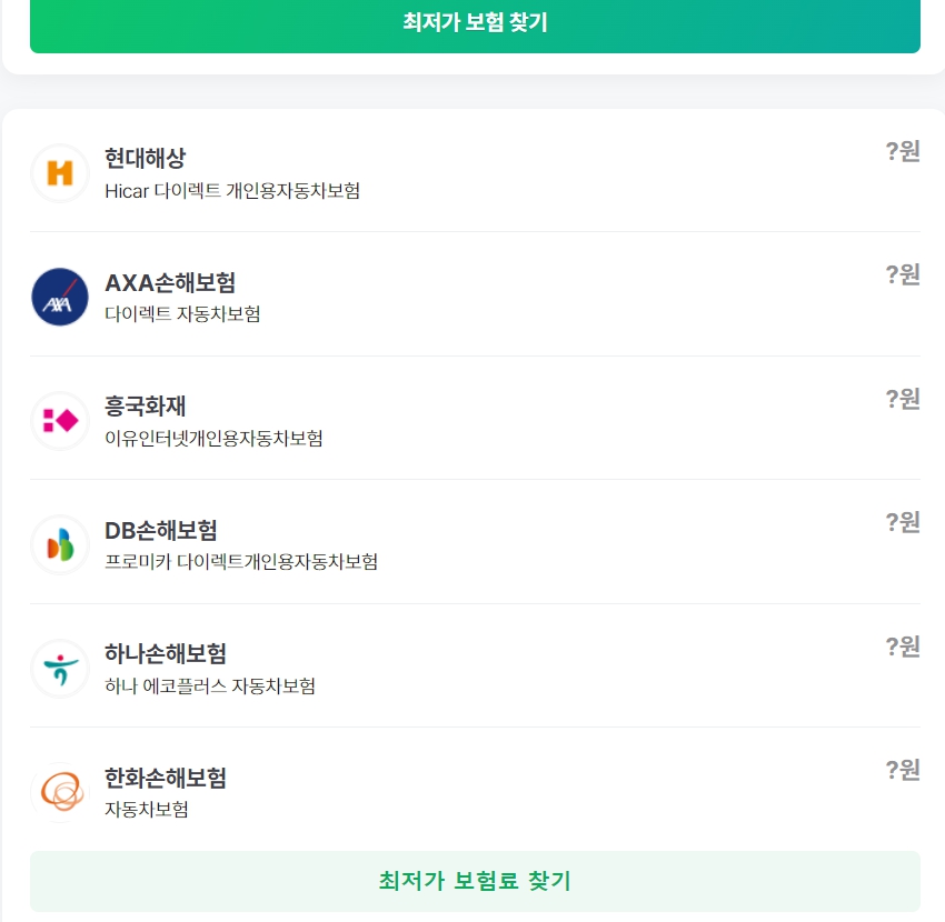 • 보험사별 자동차 보험료 비교: 자신의 차량 정보와 운전 이력을 입력하면 보험사별 보험료를 실시간으로 비교를 통해 최저가 상품을 찾을 수 있습니다.