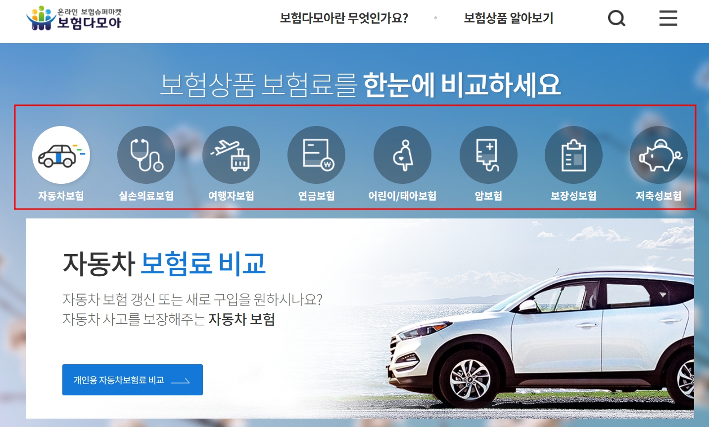 보험다모아는 온라인 보험 슈퍼마켓으로, 자동차보험, 실손의료보험, 여행자보험, 연금보험 등 다양한 보험 상품을 비교할 수 있는 서비스를 제공합니다. 특히 자동차 보험의 경우 보험사별 보험료 비교가 가능해 최저가 상품을 찾을 수 있습니다.