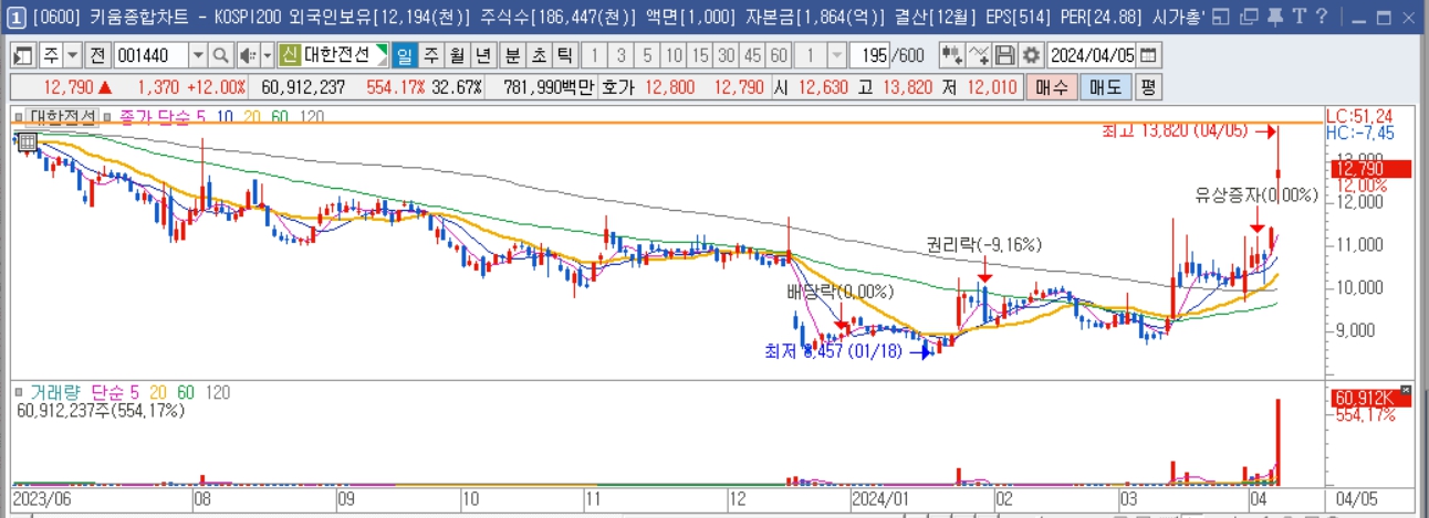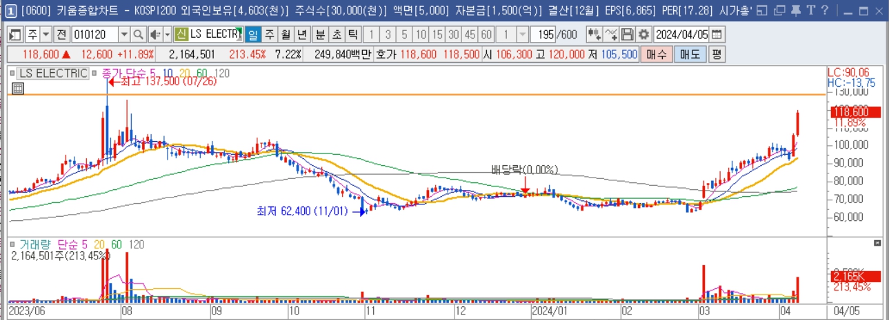 AI발 전력 수요 증가 기대감 지속으로 전력설비에 대한 수요를 증가시켰으며, 전력설비 관련주 대원전선,세명전기,대한전선, LS ELECTRIC, 가온전선, 서전기전, LS 종목도 관심있게 봐야할 것입니다