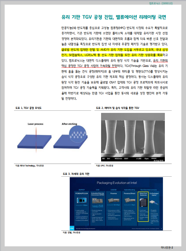 하나투자증권 조정현 애널리스트  켐트로닉스 -유리기판이 보여줄 강력한 성장  모멘텀