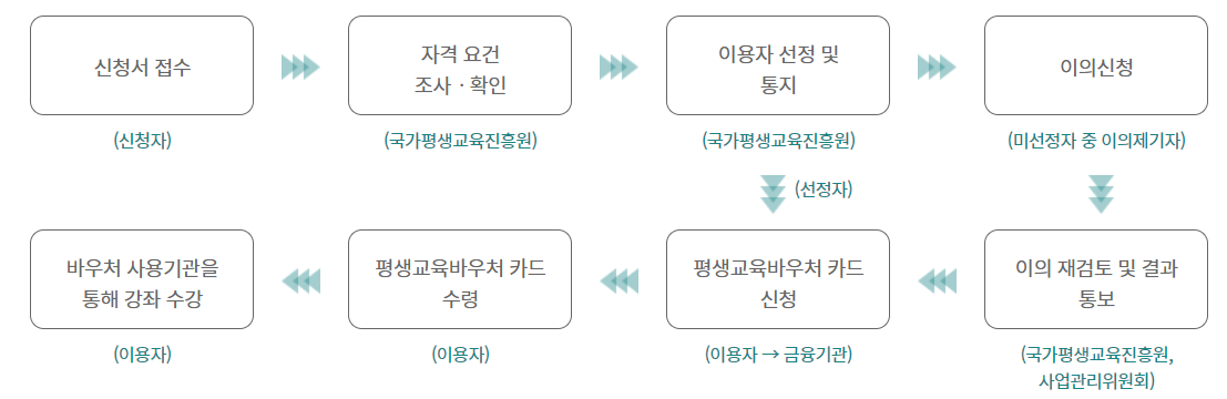 ⑤전국평생교육바우처 사용기관에서 강좌를 신청하고 수강하면 됩니다.