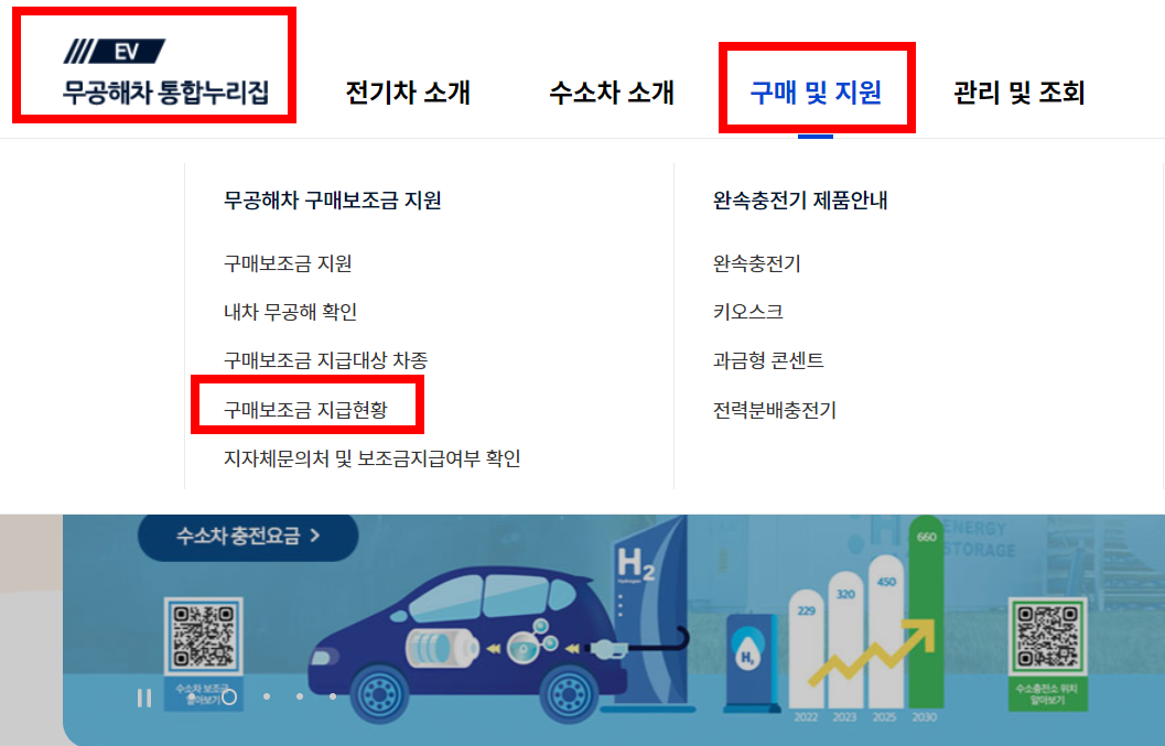 2024 차종별, 지자체 전기차 보조금 조회는 무공해차 통합 누리집 사이트에서 확인하실 수 있다.