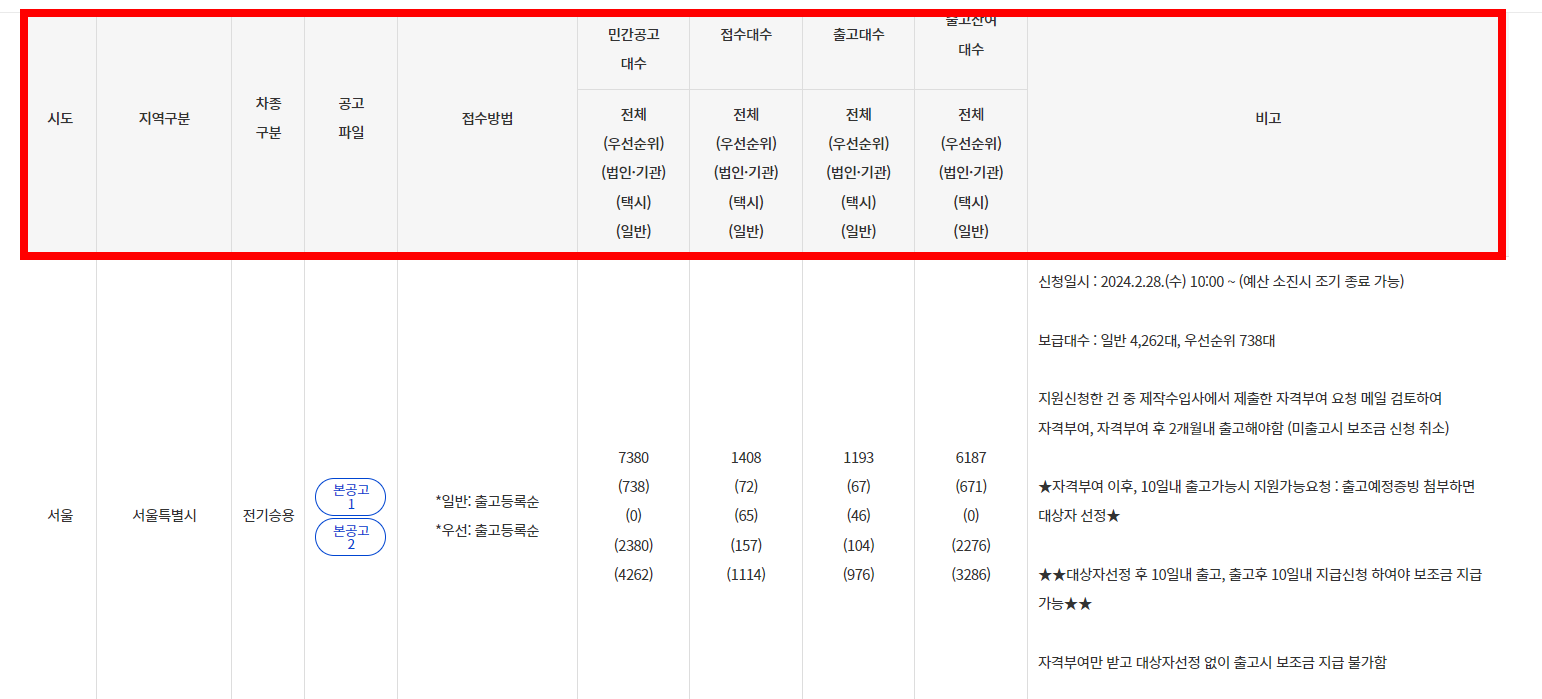 2024년도 전기자동차 지자체가 지급하는 차종별 보조금을 지역별로 조회 할 수 있답니다.