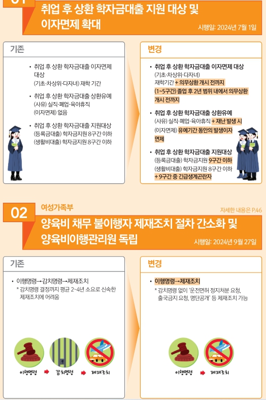 - 양육비 채무 불이행자에 대한 제재조치 절차가 간소화되어 감치명령 없이도 제재조치가능(’24.9.27.) 하다.