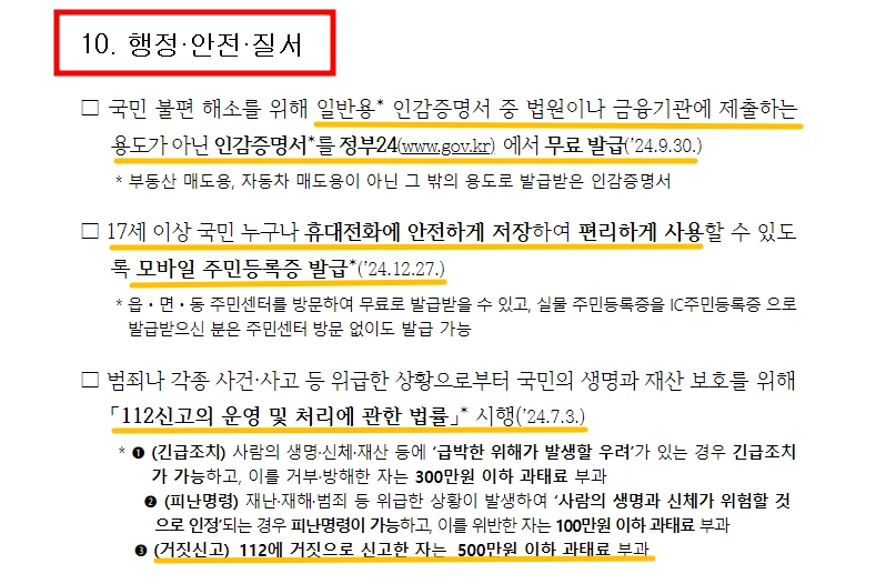 이 책자에 40개 정부기관에서 취합해 담은 새로 바뀌는 정책 233건 가운데 주요 정책을 분야·기관별로 나누어 제시했다.