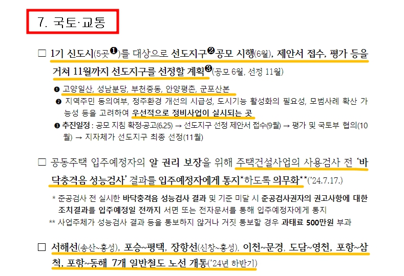 - 경기 고양일산, 성남분당, 부천중동, 안양평촌, 군포산본 등 1기 신도시를 대상으로 선도지구를 공모하기 시작해 오는 11월까지 선도지구를 선정하는 등 1기 신도시 재개발 사업에 본격 착수한다.
