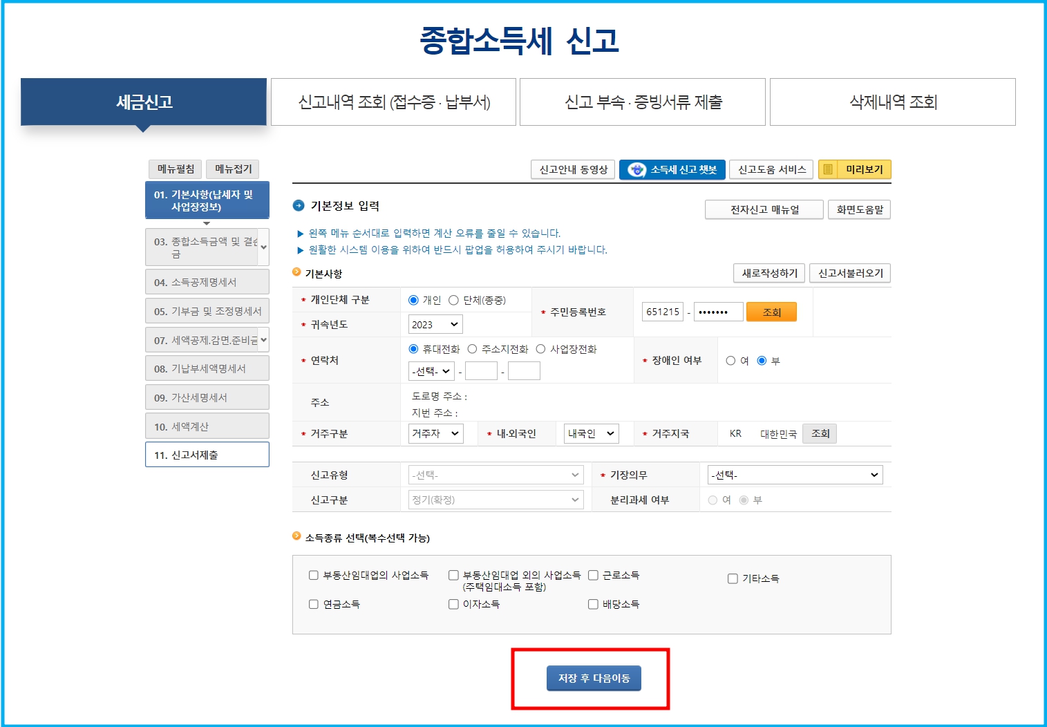 로그인 → 세금신고 → 종합소득세 신고 클릭합니다