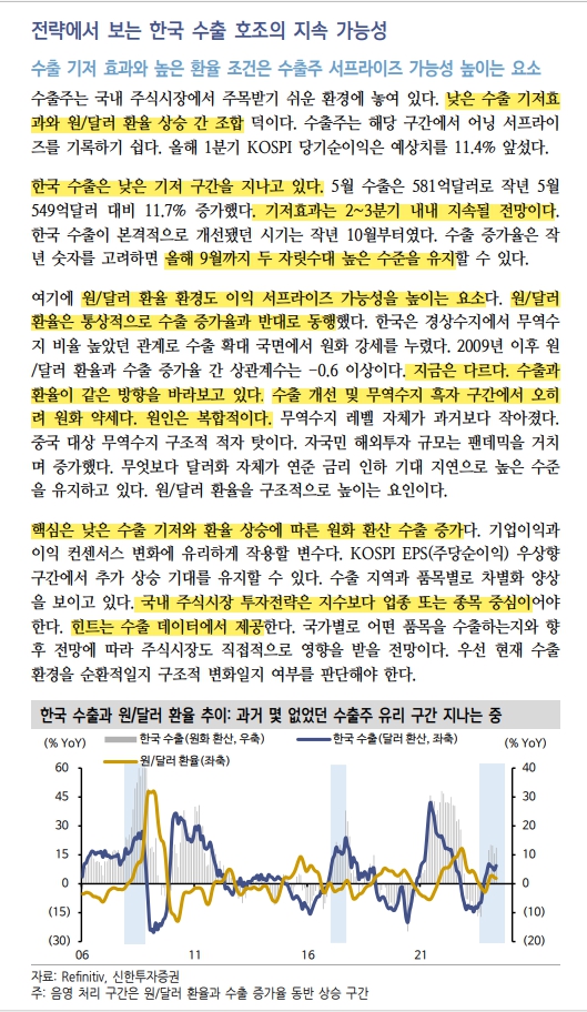 - 낮은 수출 기저효과 및 원/달러 환율 상승