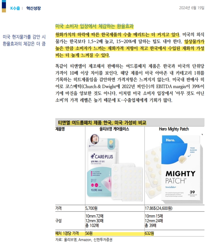 -티앤엘이 제조해서 판매하는 여드름패치도 한국과 미국 약 10배 차이