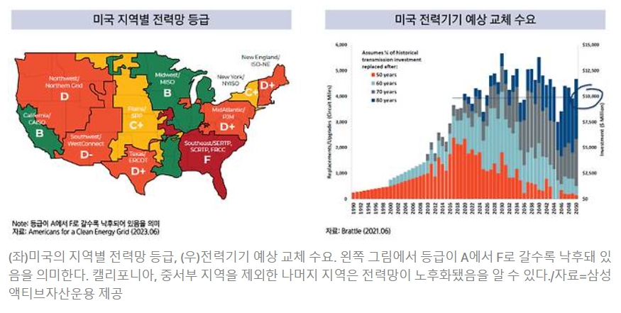 아울러 미국 내 변압기 및 전선의 70%, 전력 차단기 등의 60% 이상은 설치된 지 30년이 넘은 노후 설비로 교체가 필요한 상황이다. 미·중 무역 갈등도 국내 기업에 호재로 작용하고 있다. 미국의 탈중국 공급망 정책에 따라 중국산 변압기가 줄고, 한국산 전력 설비 비중도 늘고 있다.